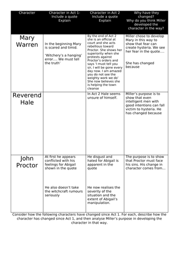 The crucible act 2 character development worksheet answers The play The Crucible is written by Arthur Miller it is a fictional story of the famous Salem Witch Trials.